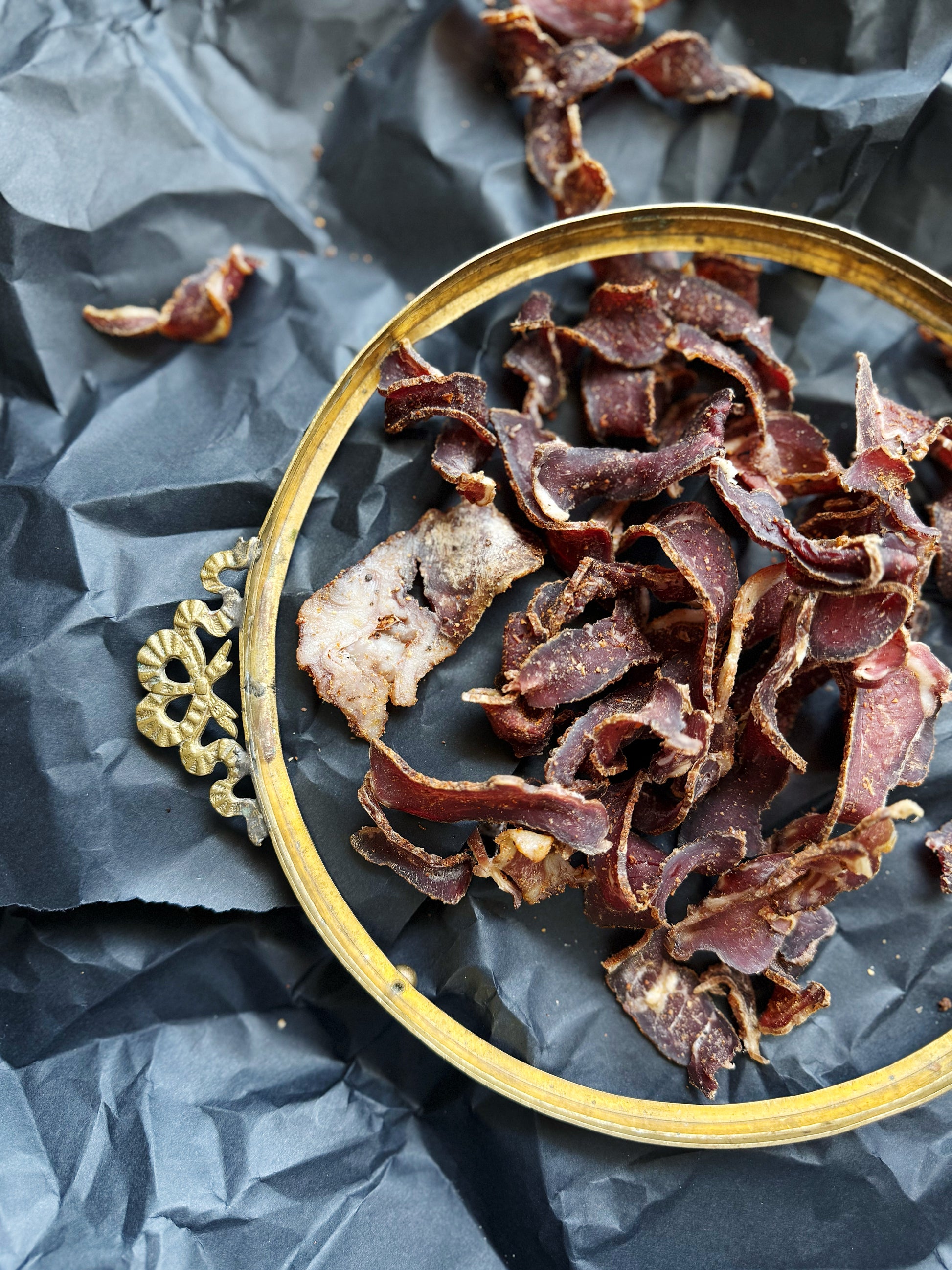 Basturma is a delicacy made from sirloin that’s dry-cured with salt and a bold blend of spices. After curing, it's hung to dry and age for six days, gradually losing nearly half its moisture. The result is an intensely flavorful meat with a chewy, concentrated texture. Uniquely, basturma is never cooked—its taste and character come entirely from time, tradition, and careful preparation.