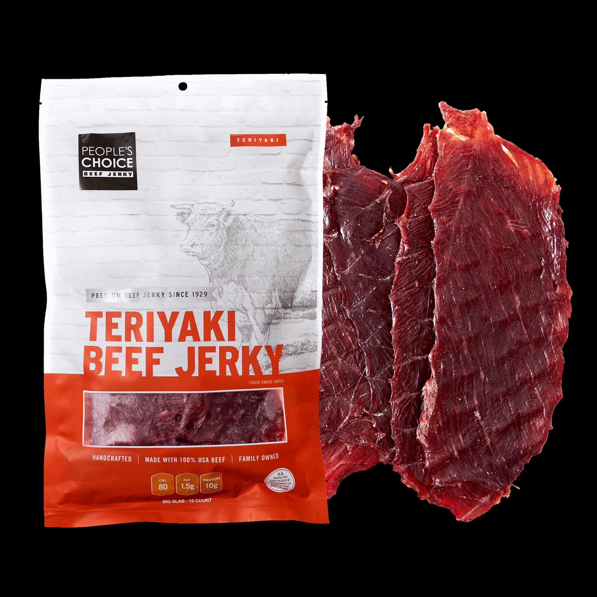 The Classic line from People's Choice Beef Jerky features traditional, handcrafted beef jerky made with simple ingredients and whole-muscle cuts of 100% USA beef. Known for its thin, tough texture and authentic flavors, this line is perfect for jerky purists. This unique snack is perfect for travel, school, work, or your gym bag. The best part, no preservatives! Handcrafted with care, the Classic Teriyaki combines a thin, classic texture with the perfect balance of sweet and savory teriyaki flavors.