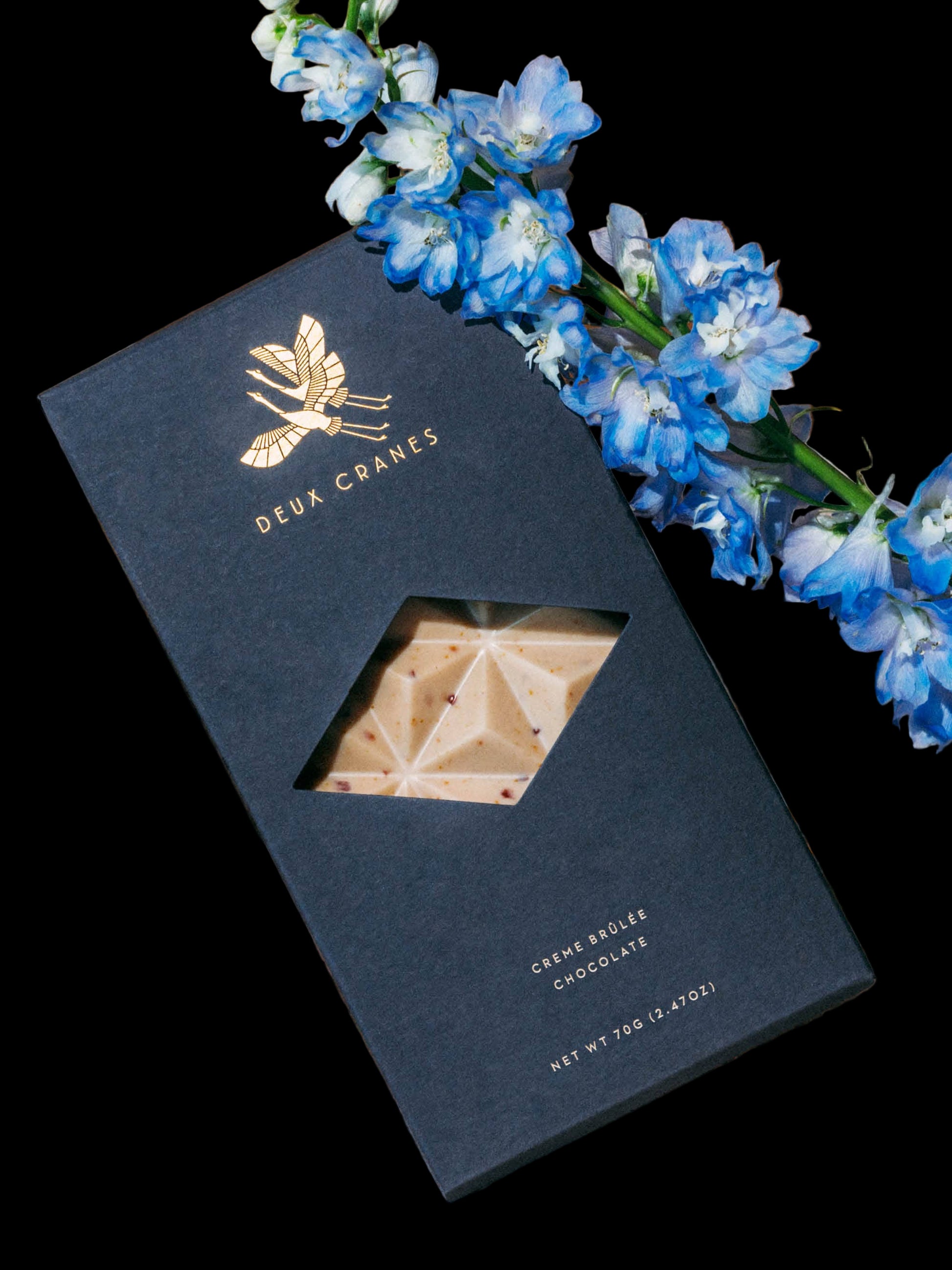 Merci beaucoup! To whoever created the creme brûlée! This chocolate is inspired by the sweet, creamy, and slightly bitter elements of the famed french dessert! It even has a crunch from caramelized sugar. Tres bien! Contains: milk 70g Please note that the packaging color may be different than what appears in photos.