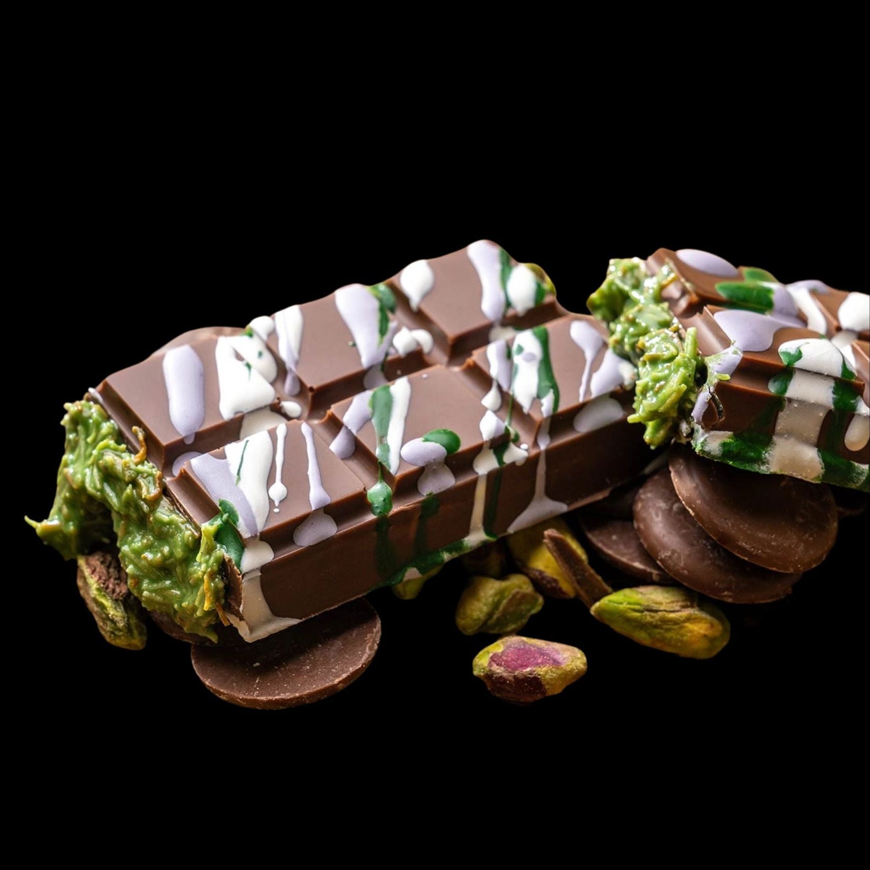 This indulgent bar features layers of rich chocolate, flaky kataifi pastry, creamy pistachio butter, and crisp textures that deliver a truly luxurious bite. Each bar is handcrafted for a standout appearance and unforgettable taste.