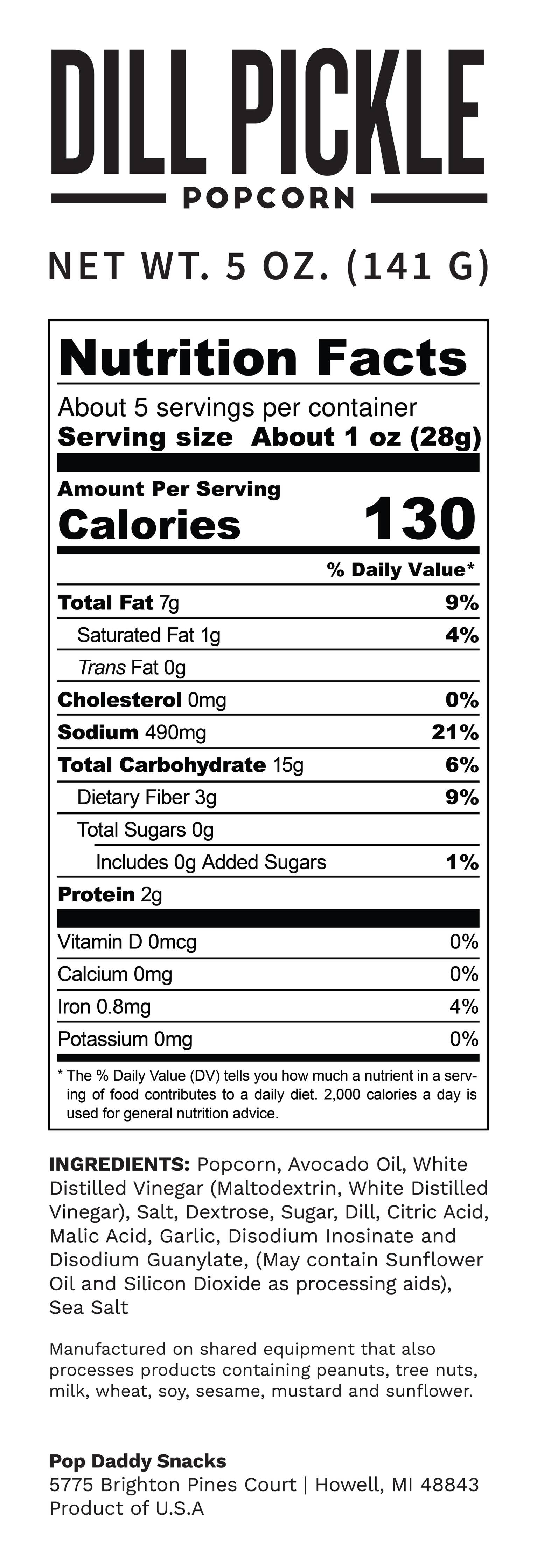 Pop Daddy – Dill Pickle Flavored Popcorn 5.0oz