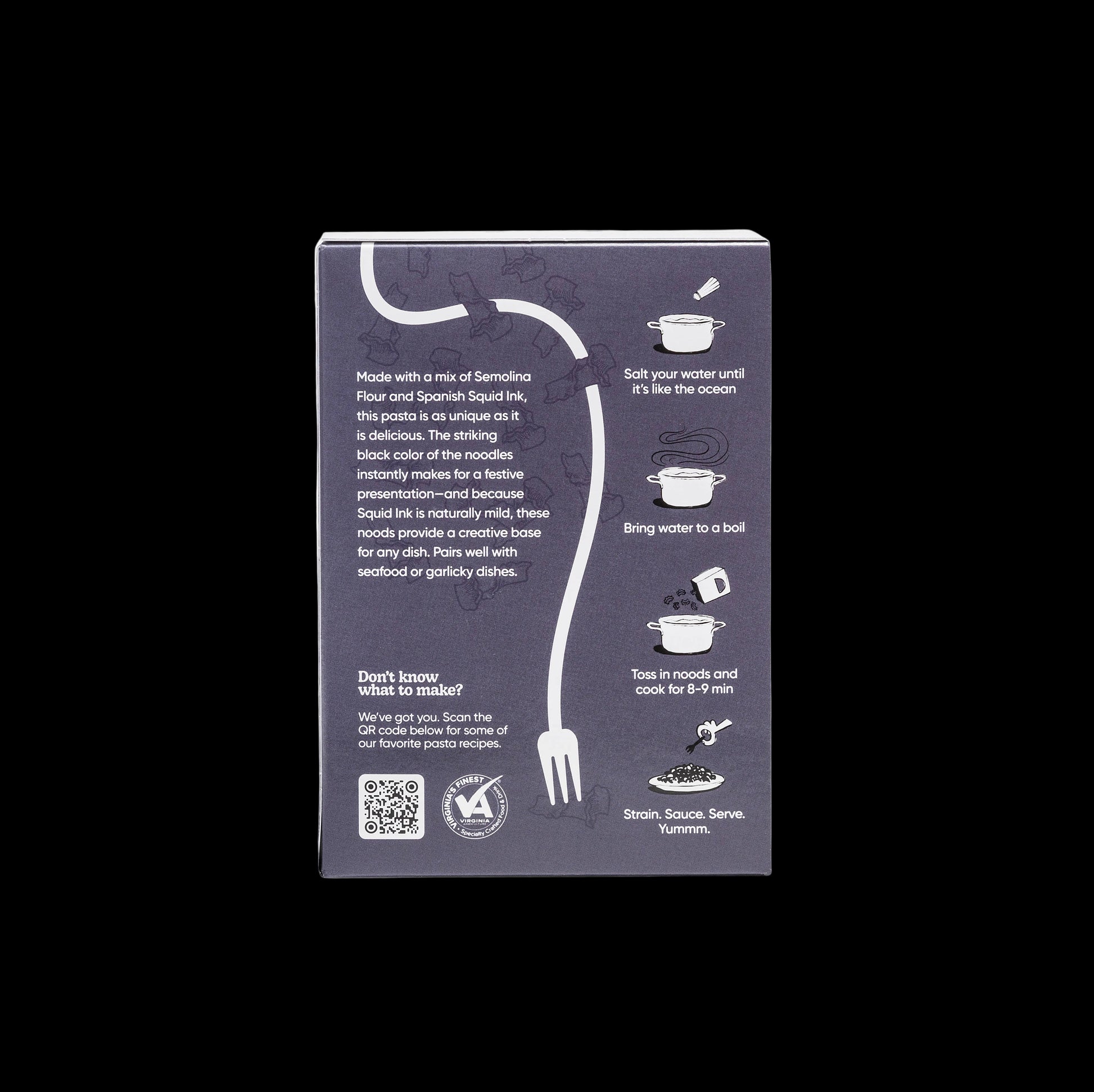 Made with a mix of Semolina Flour and Spanish Squid Ink, this pasta is as unique as it is delicious. The striking black color of the noodles instantly makes for a festive presentation—and because Squid Ink is naturally mild, these noods provide a creative base for any dish. Pairs well with seafood or garlic dishes.